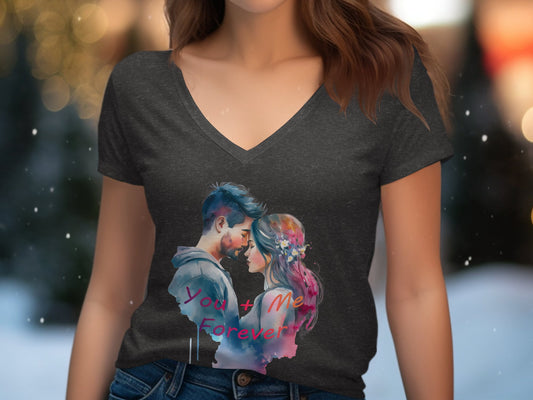 Romantic Couple Art T-Shirt – You + Me Forever Watercolor Design
