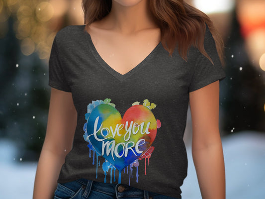 Love You More V-Neck T-Shirt – Bold Heart Design for a Stylish Statement